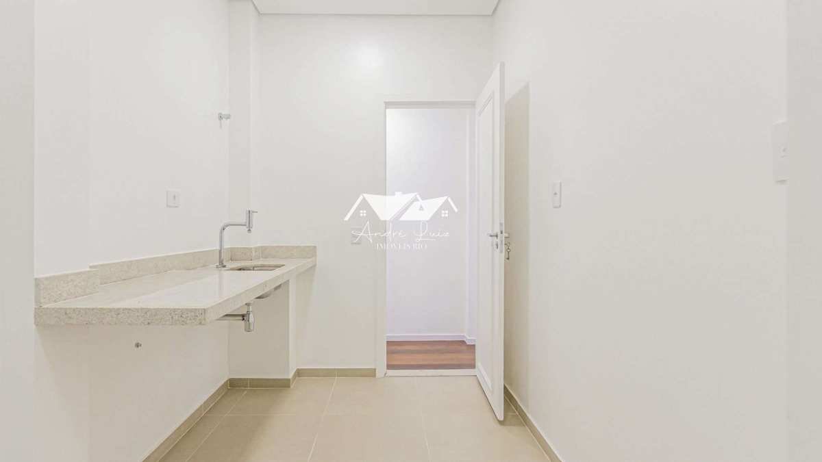 Apartamento de 139 m² composto por, sala ampla e iluminada integrada a uma varanda frontal; 2 quartos com armários planejados, sendo que um deles possui acesso direto à varanda; cozinha espaçosa integrada à área de serviço e depósito; banheiro social.